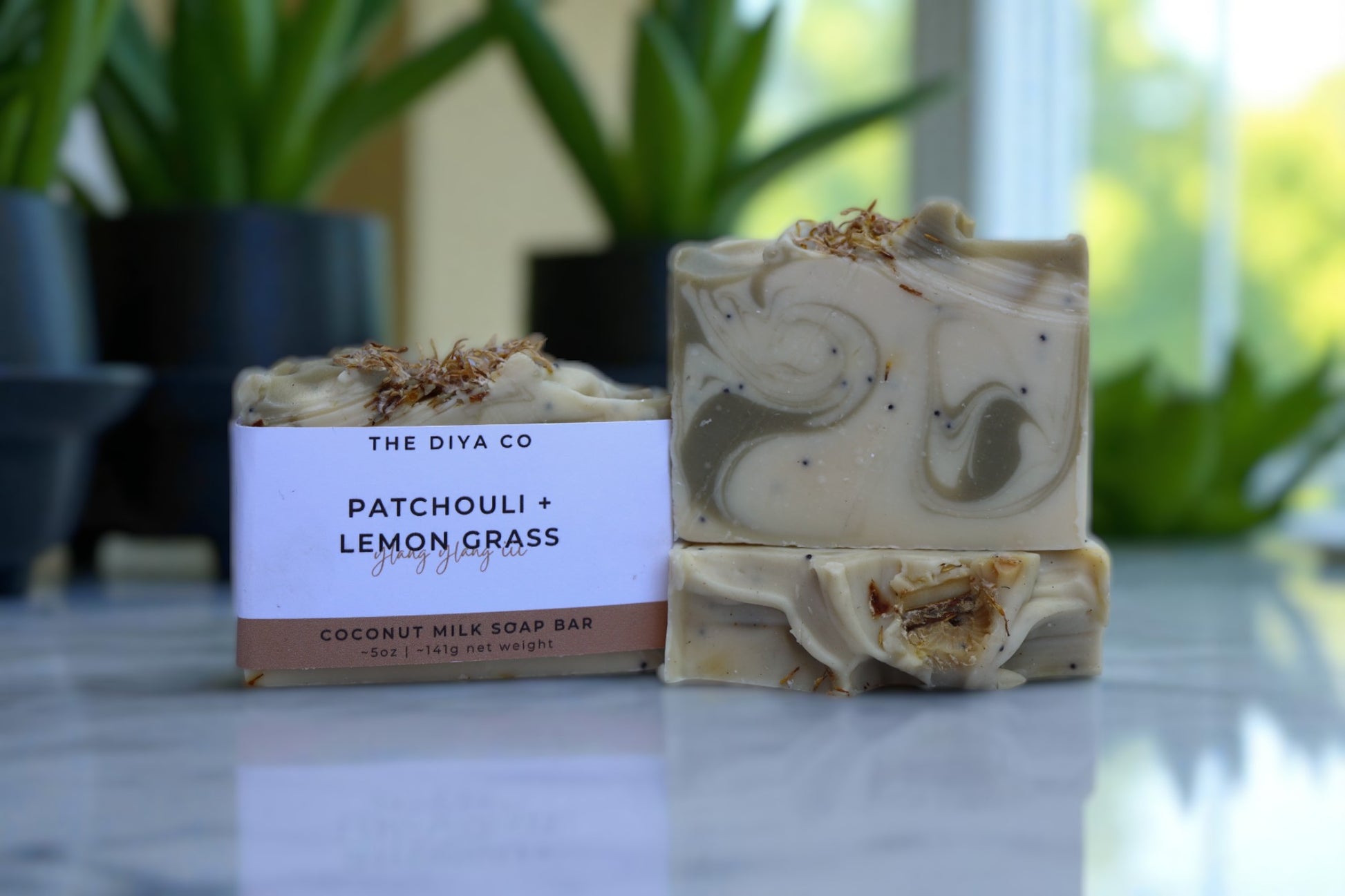 Experience an exotic blend of earthy and floral notes with our Patchouli, Lemongrass & Ylang Ylang III Soap Bar, handcrafted in small batches in Savannah, GA. This luxurious bar combines grounding patchouli, uplifting lemongrass, and floral ylang ylang with nourishing coconut milk and poppy seeds for gentle exfoliation. Yellow clay and French green clay help purify and balance the skin, while a rich blend of natural oils ensures a soft, radiant finish. Like all The Diya Co soaps, this bar is palm-oil free, toxin-free, paraben-free, phthalate-free, and cruelty-free—crafted without harsh chemicals for truly healthy skin.