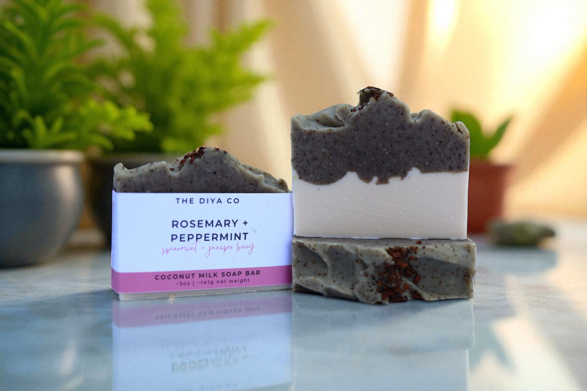 Handcrafted in Savannah, GA, our Rosemary, Peppermint, Spearmint, and Juniper Berry Soap Bar features coconut milk, rosemary, peppermint, spearmint, and juniper berry essential oils. Ground juniper berry exfoliates, while whole berries add an artisanal touch. Palm-oil free, toxin-free, paraben-free, phthalate-free, and cruelty-free—perfect for a natural beauty regimen.